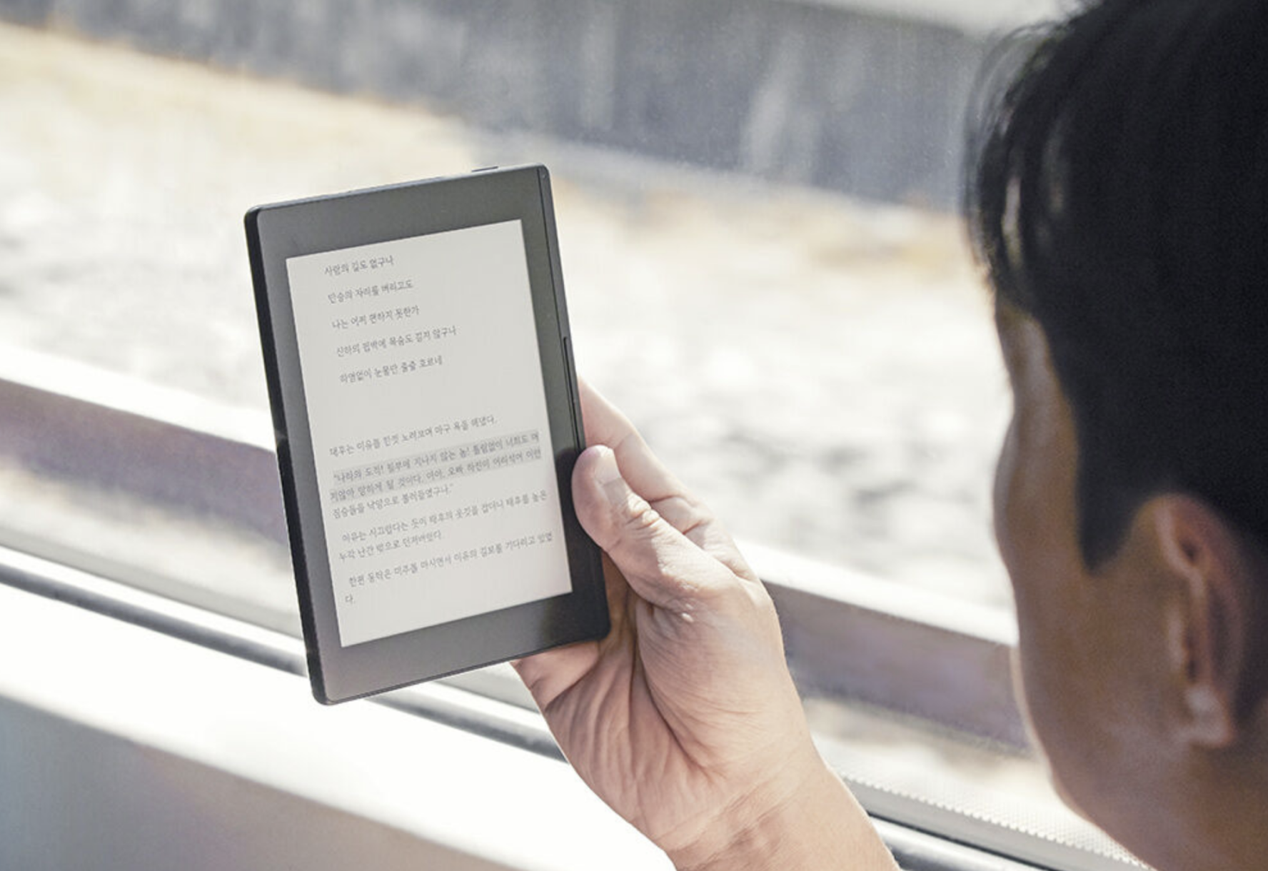 전자책 리더기 사용해 본 적 있니? 언제 어디서나 편하게 읽을 수 있고 가벼워서 난 자주 사용해. 핸드폰 대신 사용해 더 질 높은 시간을 보낼 수 있고, 원하는 책을 용량 제한 없이 담을 수 있는 것도 큰 장점이거든. 게다가 종이책에 비해 많은 양의 탄소 배출을 절감할 수 있어. 손바닥만 한 책의 탄소 배출량은 출판부터 보존까지의 사회적 비용 때문에 1.1kg지만, 전자책 리더기의 배출량은 6g으로 적거든. 편안한 독서, 저렴한데다, 여러 보조 기능을 제공하는 전자책, 한번 사용해보는 건 어때?